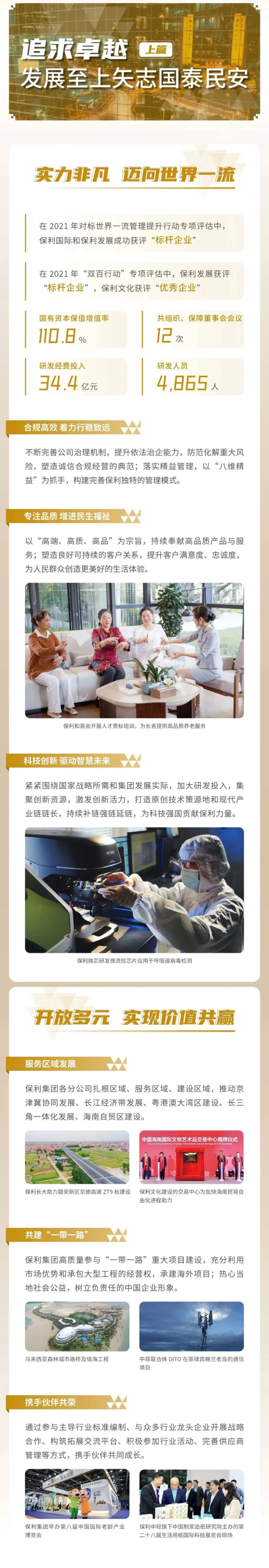 凡是過往,皆為序章。新征程上,我們將全面貫徹落實黨的二十大精神,一如既往傳承忠誠赤色、發揚擔當亮色、保持務實底色、永葆奮斗本色,自信自強、守正創新,踔厲奮發、勇毅前行,以“保國利民 追求卓越”的崇高使命,回饋社會各方的支持與期待,不負時代重托,建設一流保利,共創美好未來!