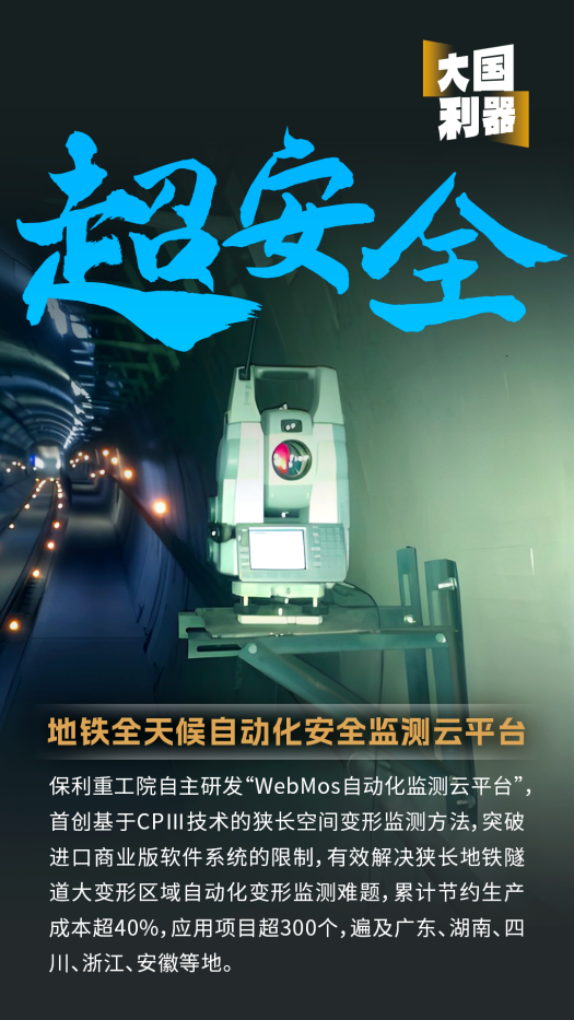 漆黑的地鐵隧道內不時閃爍著點點紅光,這是測量機器人正在將監測數據實時回傳至WebMos自動化監測云平臺。千里之外,技術人員只需遠程監控,便可全程掌控地鐵隧道結構的安全情況,做到突發情況提前預防、安全隱患提前預警,保障城市軌道交通既有結構安全及運營安全。這一平臺,就是保利發展下屬重工院打造的“安全之眼”。